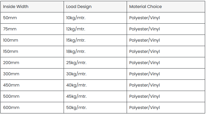 Width: 50/75/100/125/150/200/225/250/300/400 UPTO 1200 mm