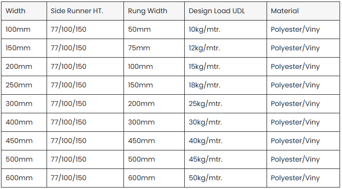 Cable trays & Ladders supplied in standard lengths of 2.44 & 3.00 Meters. Cable Ladders also available in special lengths of 3.858, 6.000 & 7.315 on request.